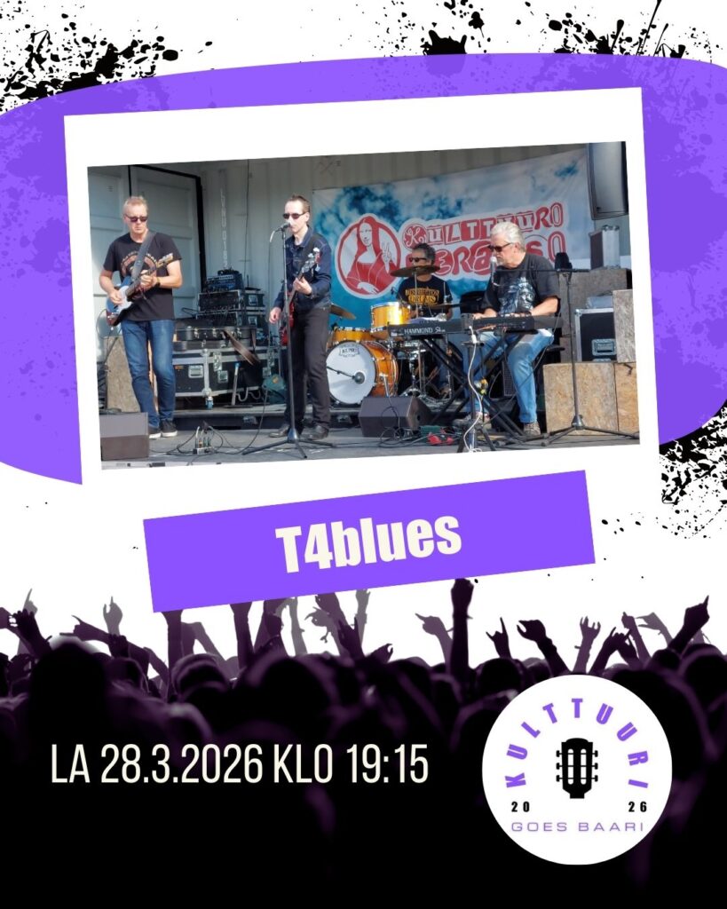 T4Blues on hyvän keikkavastaanoton saanut 2013 perustettu hyvinkääläinen bluesbändi. Soitamme blues, rock- ja soul-tyyppistä materiaalia, Freddy, Albert ja BB King, Michael Bloomfield, Sam Cooke, Wilson Picket, The Meters, Chuck Berry, Robin Trower, Hendrix yms. Bändin soittajilla on kokemusta erinäisistä blues-, surf-, rock- ja viihdebändeistä ja trubaduurikeikoista. Tärkeä tekijä on myös sosiaalinen yhteenkuuluvuus.