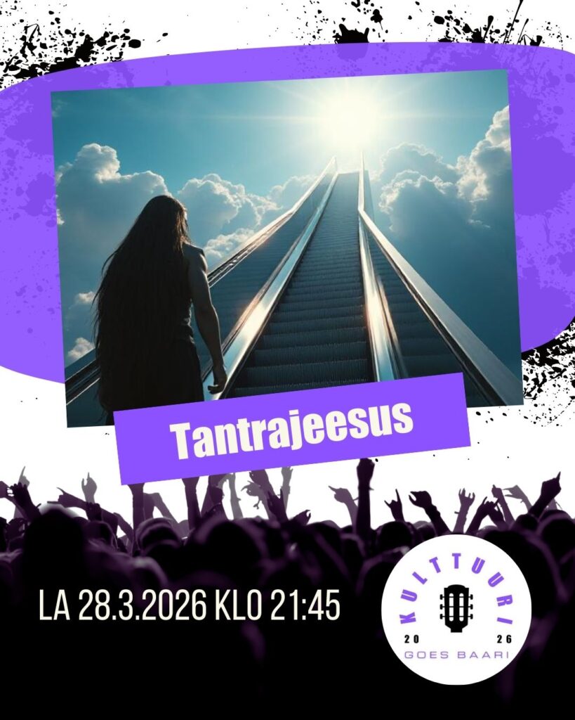 Tantrajeesus on suomalainen rock-lahko. Keikoilla porukka viedään mukaan höyrysaunailtojen tarinatuokioihin, baaritiski-filosofiaan ja hämärään henkisyyteen – ilman turhaa pönötystä, mutta reippaalla hurmosvaihteella. Setti on enemmän yhteisöllinen messu kuin siisti keikka: kitarat ulvovat, laulut raikuvat ja jokainen saa olla hetken pyhä jyssäys. Tantrajeesus on vahvistunut ja ottanut toiseen mailaan uuden vanhan ystävän. Sisältää vertauskuvallisia opetuksia.